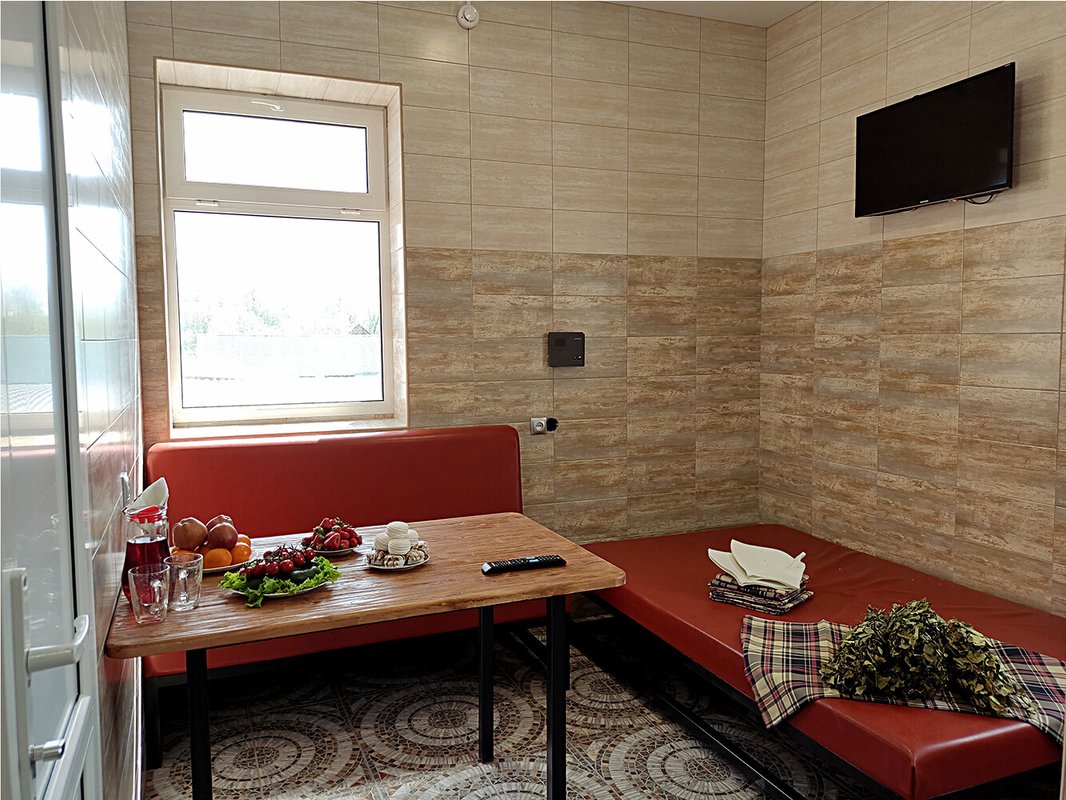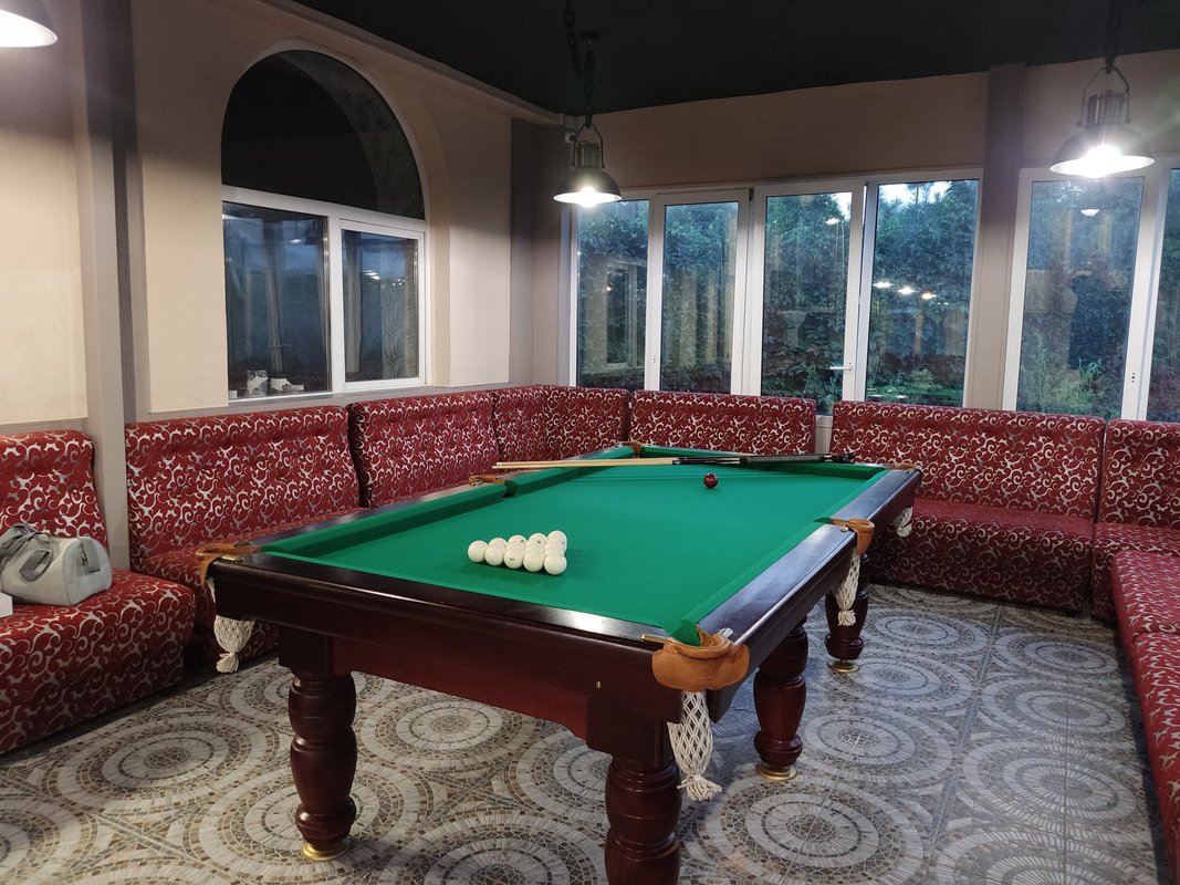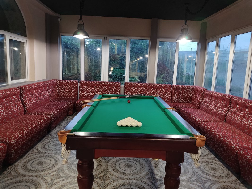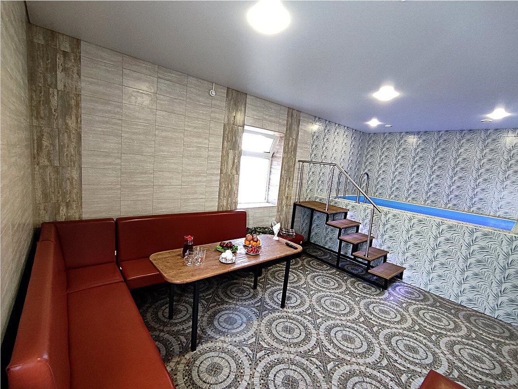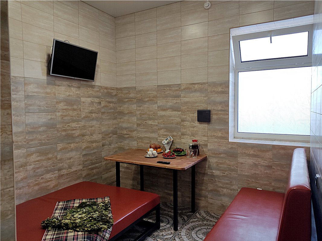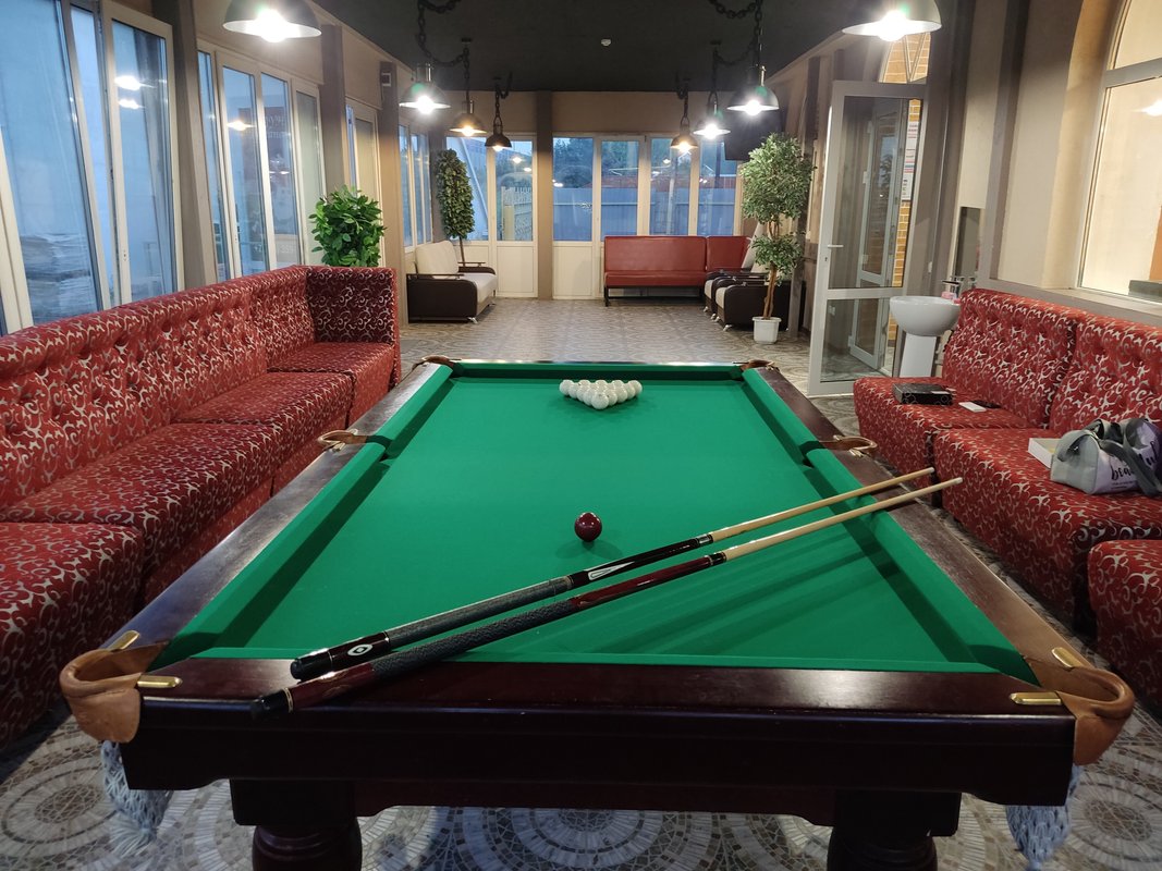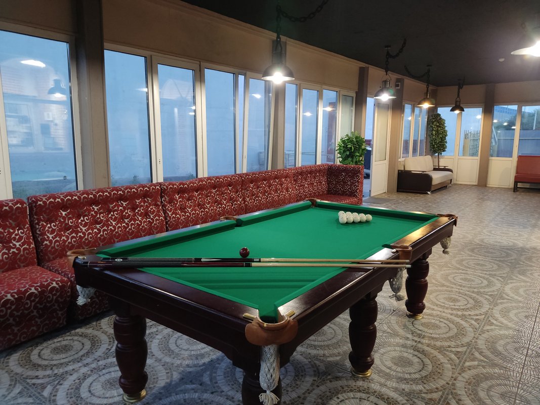 Не хочется в бассейн? Не беда! Вместо этого можно передохнуть в нашей комнате отдыха. Мы постарались создать здесь комфортный, стильный интерьер из максимально натуральных, безопасных материалов, подобрать мебель, которая будет одновременно удобной и приятной глазу. Надеемся, что вы его оцените! Для создания настроения мы можем предложить вам бильярд. У нас нет собственной кухни, но мы ничего не имеем против, если вы придете со своей едой и совместите посещение бани с импровизированным застольем. Главное помните, что плотная трапеза незадолго перед посещением парной - это не самая хорошая идея, согласно мнению терапевтов. А вот после парной можно трапезничать смело!